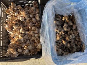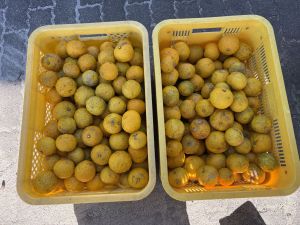 練習後には、クラさんからの柚子、カズさんとツダさんのお土産、そして岡山大会のチーム土産としてニンニクや生姜など、盛りだくさんの差し入れが並んだ